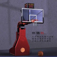 篮球架采用电动控制系统,液压系统。篮球架主体升降采用四连杆机构,电机采用220V、50HZ单相电源带动油泵,经微电脑控制系统使油缸产生伸缩运动,从而使篮球架立臂升降和箱体走轮起落。箱体前端为两个万向轮,后端为两个定向轮。